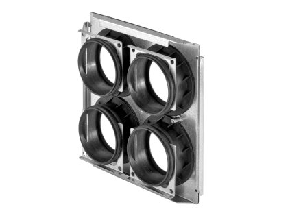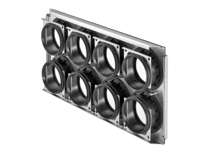 Dvouřadý rozdělovací box pro distribuci vzduchu v rekuperačním systému vyvinutý a vyrobený v České republice pro potrubí o průměru 90 mm