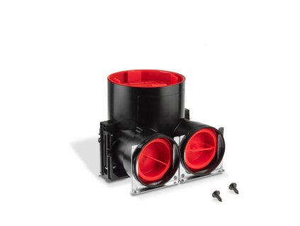pro připojení taliřového ventilu DN 125 na ComfoTube 2 x DN 90, včetně ochranných krytek,upevňovacích uhelníků a fixační spony